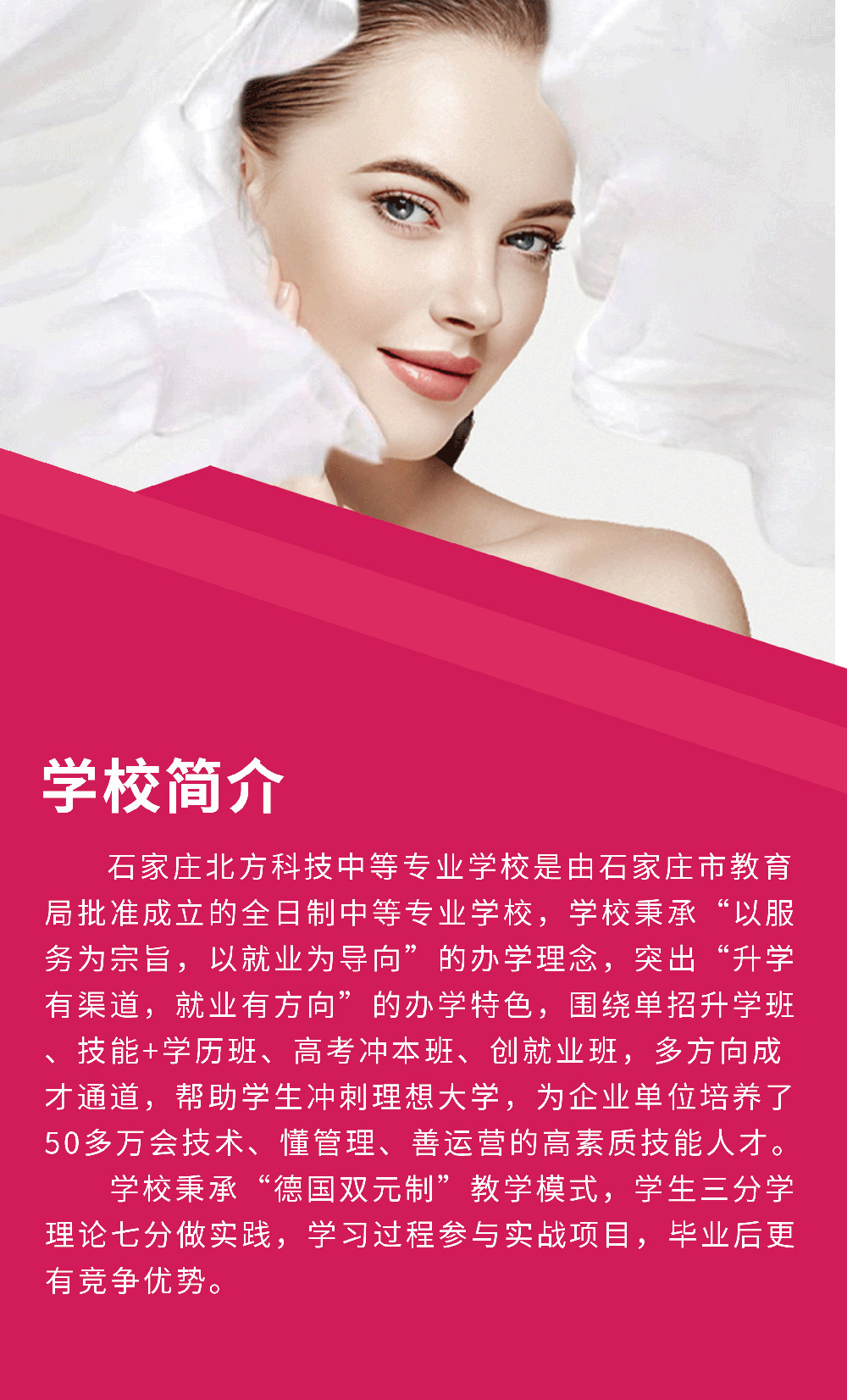 宁晋初中毕业生:石家庄北方科技中专学校形象设计专业招生简章