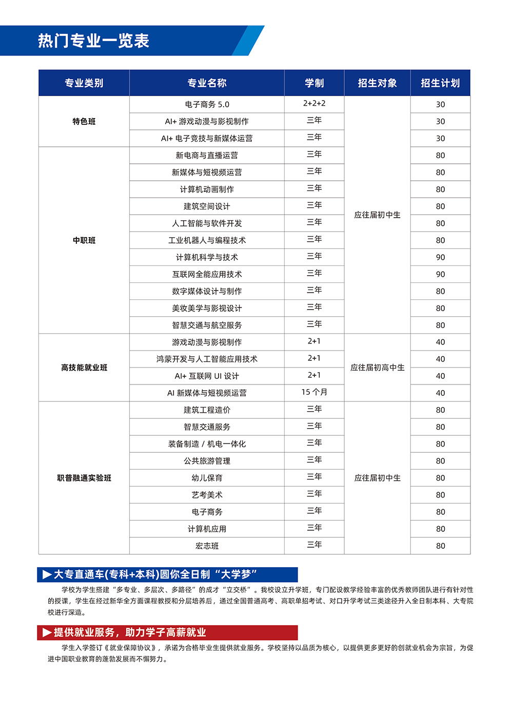 石家庄新华电脑学校根据市场调研和当前市场行业需求,开设特色专业:AI+游戏动漫与影视制作、电子商务5.0、AI+电子竞技与新媒体运营;升级热门专业,包括游戏动漫与影视制作、新电商与直播运营、人工智能与软件开发、计算机科学与技术、建筑空间设计、新媒体与短视频运营、VR全屋整装设计师等。学子可以根据自身需求选择适合的专业,实现自己的人生目标。