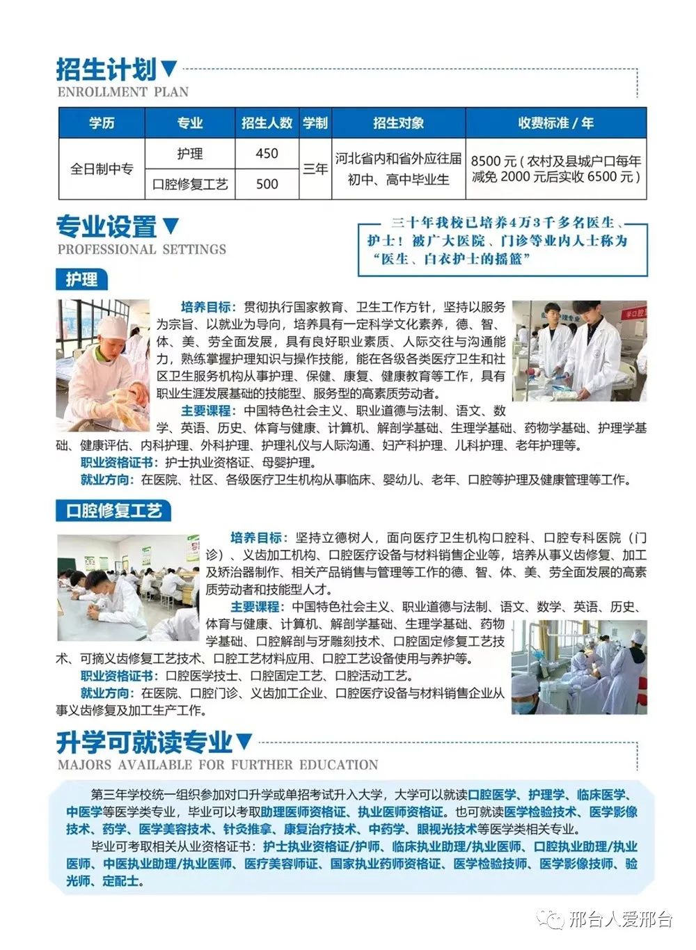 石家庄现代医学中等专业学校创办于1991年,是河北省教育厅批准成立的一所全日制医学专业学校,是河北省考试院统招计划学校。我校面向全国招生,毕业颁发国家承认的学历证书。学校被评为国家级重点口腔教育基地先进单位、河北省特色医疗重点推广单位河北省重点医学职业学校。学校先后与河北医科大学、华北煤炭医学院联合办学,2006年被认定为“阳光工程”就业再就业培训基地。